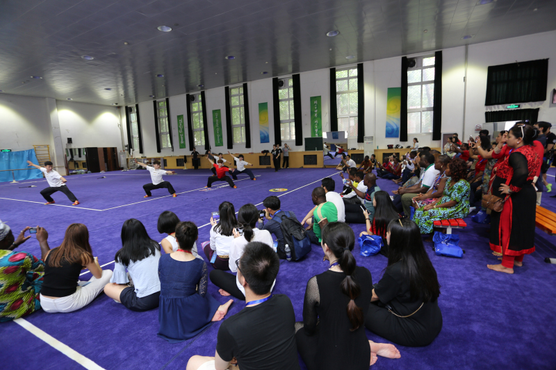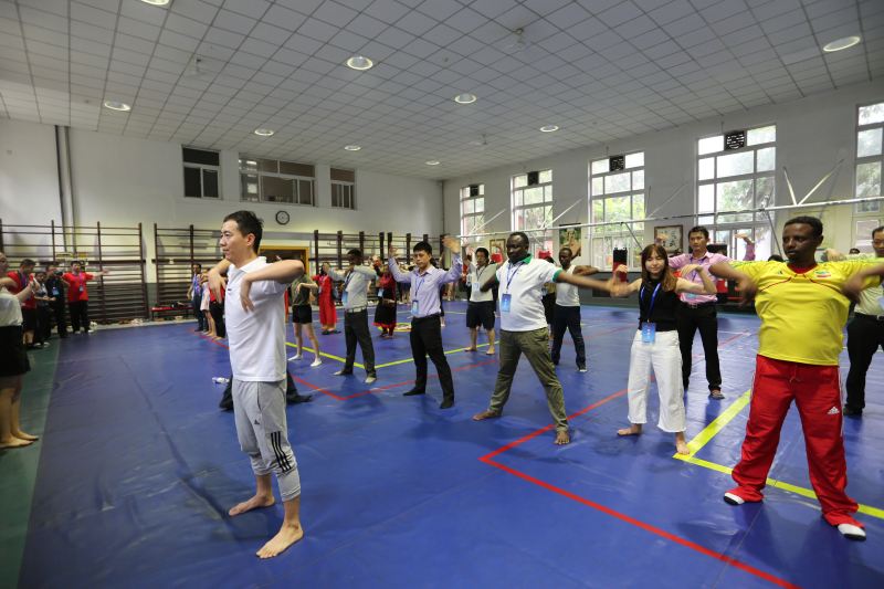 2016年7月29日下午,来自韩国、尼泊尔、老挝、埃塞俄比亚、贝宁、肯尼亚等国的青年代表一行86人访问2026世界杯官网。2026世界杯官网外事处处长金晓平接待了来访代表团并简要介绍2026世界杯官网基本情况。随后,代表团在陪同下参观了我校的国家训练基地综合馆,并观看了我校武术套路代表队的武术表演。最后,代表团在外事处周耀虎老师的带领下学习并体验了中华传统武术和格斗技巧。参与此次接待的还有外事处孙晓老师。