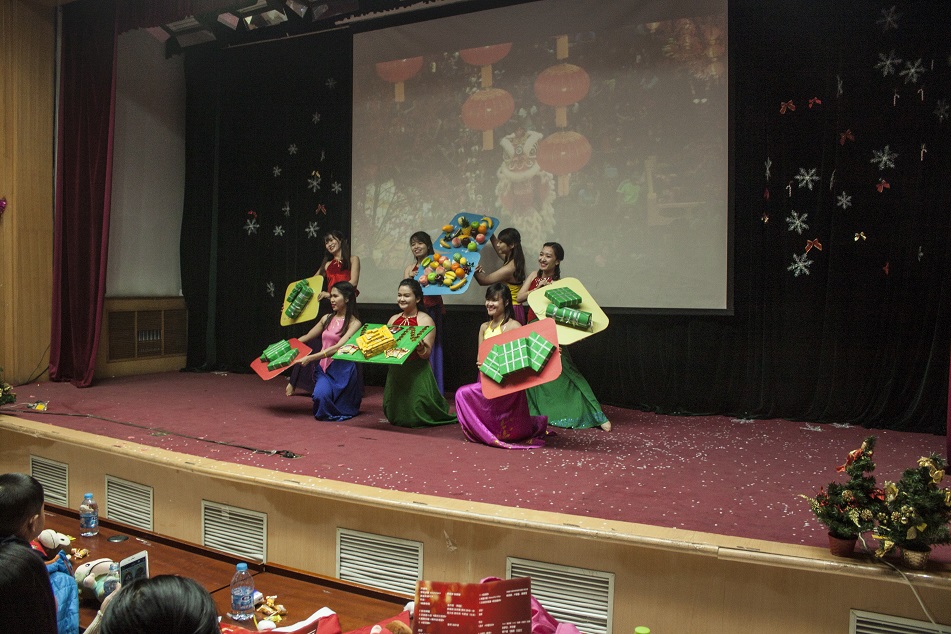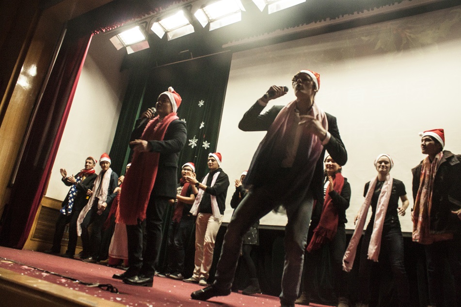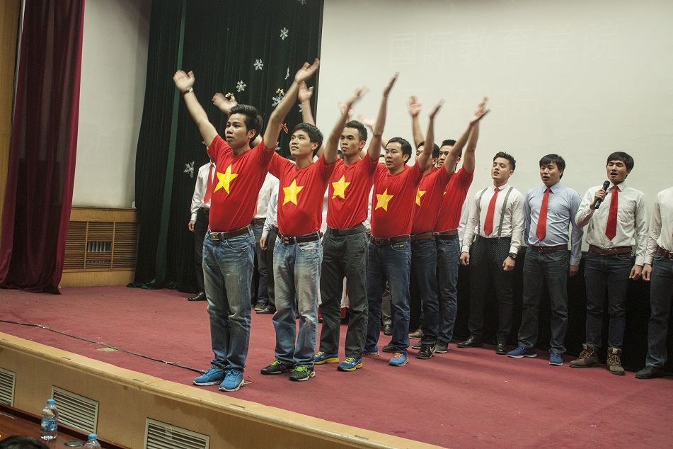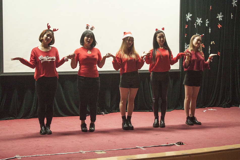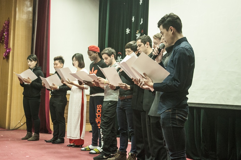 最后,晚会在汉语班的大合唱《铃儿响叮当》中落下了帷幕。来自不同国家与地区的同学们在这次活动中体会到了家的温暖,相互沟通、彼此了解,一起欢笑、一起放歌、一起舞蹈。一群远在他乡的游子,在这里共度佳节。这,便是国际教育学院的魅力。