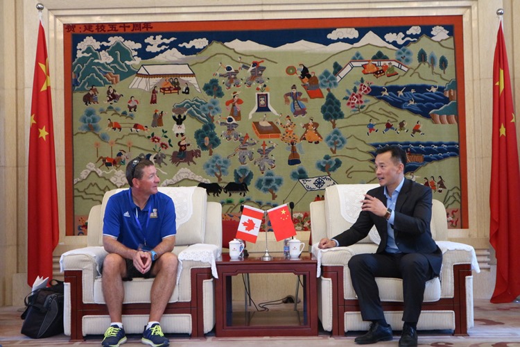 我校国际交流与合作处副处长花勇民接待了该代表团,会上双方就两校学生运动员和运动队的交流与合作进行了探讨。参加会见的还有洪彬老师,研究生院副院长胡斌,杨洋老师和研究生院学生。会后,洪彬老师陪同代表团参观了校田径场,国家队训练基地等场馆设施。