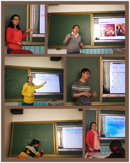 为了加强我院青年教师队伍建设,鼓励青年教师加强基本功训练,提高教学水平,并选拔能代表我院特色和教学水平的青年教师,国际教育学院于2017年3月15日上午10点,在小白楼三楼第四教室举行青年教师教学基本功选拔赛。语文教研室乔东鑫、杜丽、匡昕、高云鹏、王辰和项英六位青年教师参加了此次选拔赛。院长田青和语文教研室其他老师出席比赛,进行观摩学习和讨论。老师们参赛的课题涉及汉语言文学专业各个领域,从外国文学中的古希腊神话,到中国文学中的古典诗歌,从现代汉语语法到语言学概论中的语言与思维的关系,再到现代公文写作。老师们的教学各有特色,田院长和听课的老师纷纷表示大有收获。乔东鑫老师语言流畅,思路清晰,将现代汉语中语法这个概念与现实生活紧密联系起来;项英老师教学方法多样,逻辑清晰,教姿沉稳;高云鹏老师教学内容底蕴深厚,娓娓道来,值得回味;王辰老师视野广阔,教学内容逻辑清晰有趣;杜丽老师教学投入,内容有趣;匡昕老师教学直接实用,指令清晰,可操作性强。经过充分地讨论,最后学院老师们做出了一个艰难的抉择,决定推举项英老师代表学院参加接下来的全校青年教师教学基本功大赛。