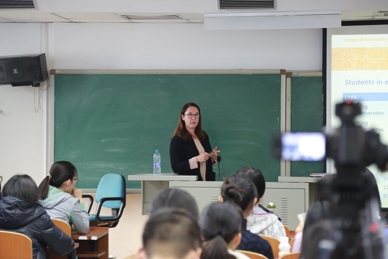 访问期间,芭芭拉·塔瑟博士为我校国际教育学院汉语国际教育专业的学生介绍了因斯布鲁克大学目前的国际化情况。维尔内尔·纳赫鲍尔教授和米歇尔·哈斯勒教授与我校运动康复系陆一帆教授和运动人体科学学院刘卉教授开展了研讨会,介绍了因斯布鲁克大学冬季项目科研实验室及科研现状并探讨了两校在冬季项目合作的可能性。