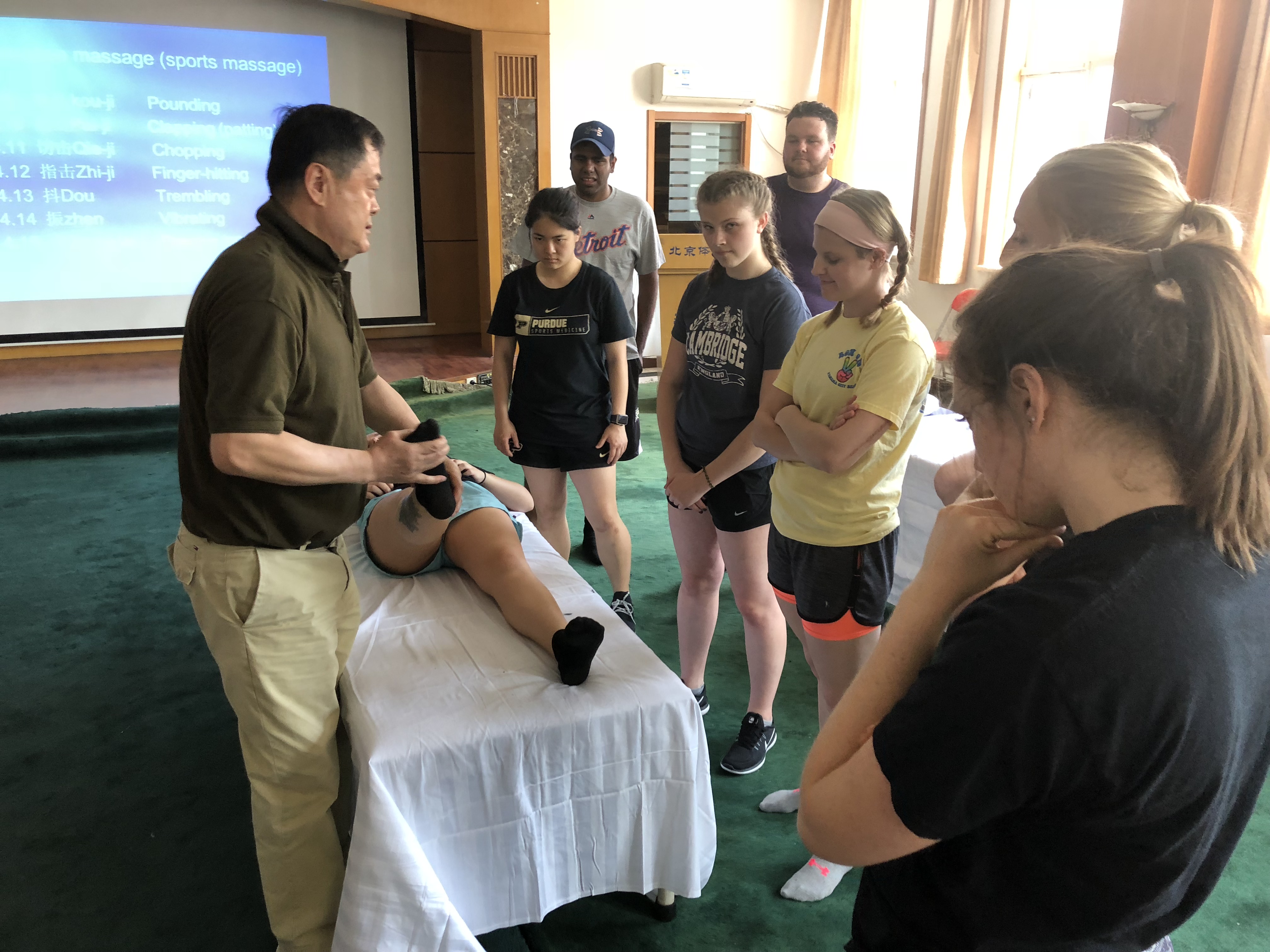 国际交流与合作处接待并安排了全部课程,心理学院承办了所有的学生活动。普渡大学学生在我校体验了武术课、中医按摩课、针灸课、围棋课、中国舞蹈课、以及舞龙、舞狮、柔力球等课程。学习期间,该校师生参观了国家队训练馆和科研中心。