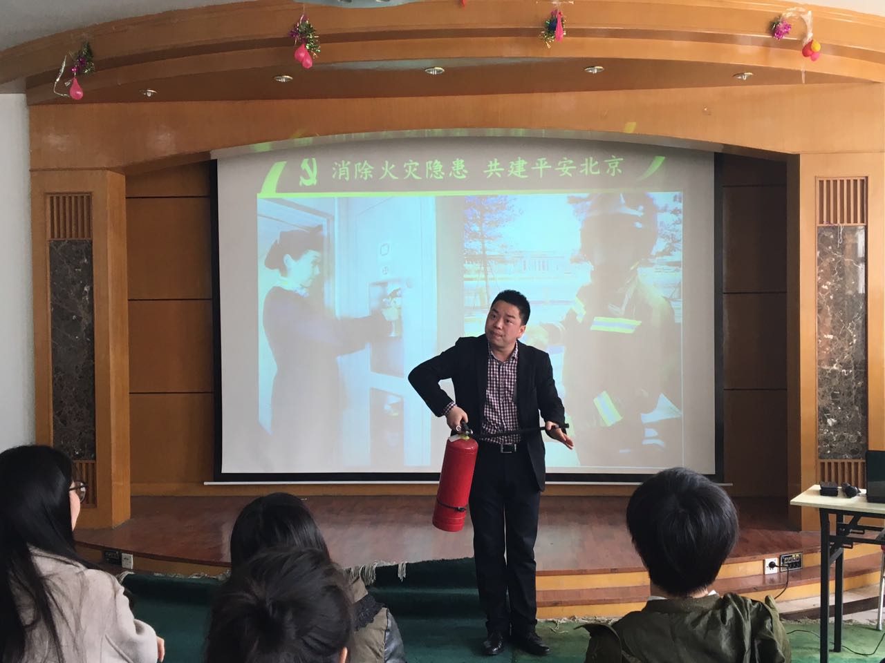 乔有才教官引用了大量生活中的真实事例,深入剖析了引发火灾的原因,详细讲解了火灾初期的灭火措施、火灾的扑救程序和火灾现场的自救方法,结合校园情况重点介绍了日常容易导致火灾的隐患和预防措施。他指出,电器使用是引发火灾的一大因素,包括电线老化、违规使用电器、电器超期服役、电源靠近易燃材料等。乔有才教官以触目惊心的人员伤亡数据和血淋淋的事实给大家敲响了安全警钟。乔有才教官还讲解了干粉灭火器、二氧化碳灭火器和水基灭火器的区别,现场展示了灭火器和防火逃生面具的使用方法。本次讲座通过大量事例和现场演示,给全院师生上了一堂实实在在、生动鲜活的消防知识教育课,切实提高了大家的消防安全意识。