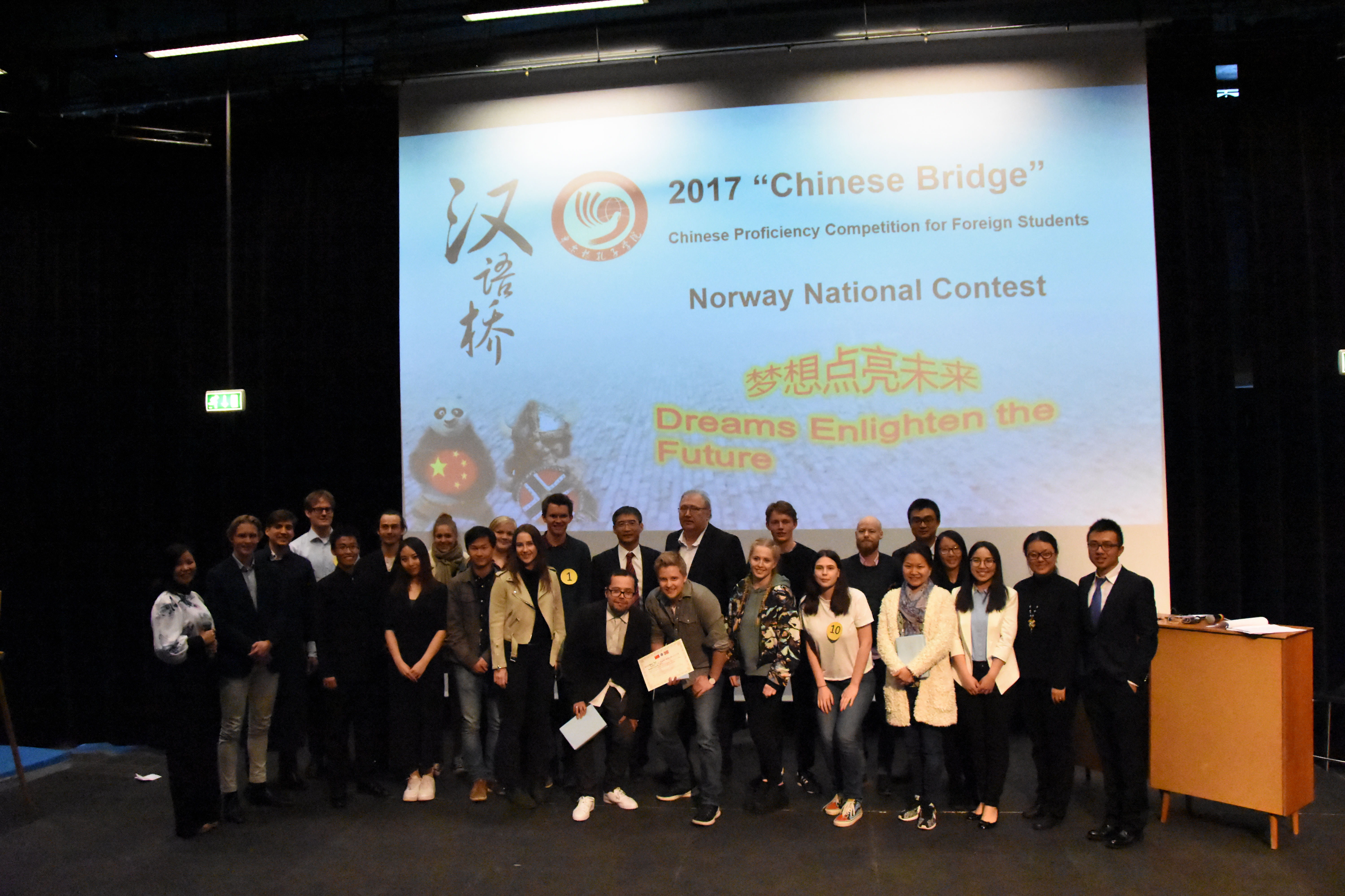 2017年4月29日,中挪恢复关系正常化第132天,由孔子学院总部/国家汉办主办,中国驻挪威使馆教育处和卑尔根孔子学院承办的“汉语桥”世界大、中学生中文比赛挪威赛区预选赛首次在挪威首都奥斯陆功举行。来自挪威各地七所中学和两所大学共15名入围决赛选手齐聚奥斯陆参加此次活动。