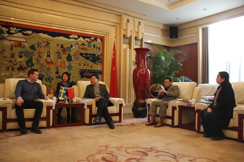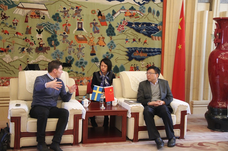 2016年12月8日上午,CCM瑞典总部米歇尔(Micheal)、CCM中国代理商达肯总经理大卫先生(David)、达肯冰球事业推广部汤米先生(Tommy)一行三人访问我校,我校耿宝权副校长会见了代表团。双方就教学合作、校队赞助、赛事合作及教练员培训等方面进行了交流。陪同参与会见的还有外事处处长金晓平、副处长董梅、外事处杨旖旎和王晓亮老师。