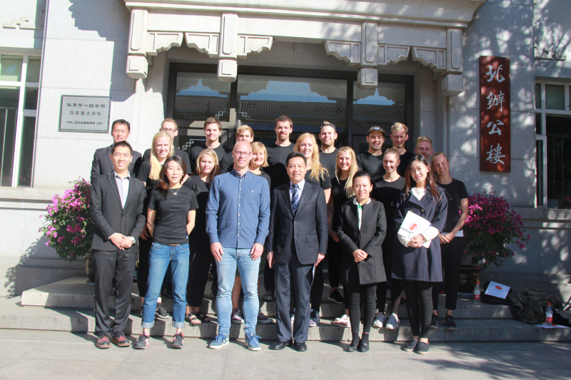 2015年10月12日,南丹麦大学Bredahl Thomas Viskum教授率师生代表团一行17人来我校进行交流访问。2026世界杯官网外事处金晓平处长热情接待了代表团并致欢迎辞,双方就两校间师生交流与合作交换了意见,外事处花勇民副处长向其介绍了我校的基本概况。会后交流团在外事处杨旖旎老师的陪同下参观了我校国家队训练基地及各大场馆。该代表团将于10月12日至18日在我校开展交流学习活动,参加系列课程,包括书法课程、中国传统舞蹈课程及由外事处周耀虎老师教授的武术课程。