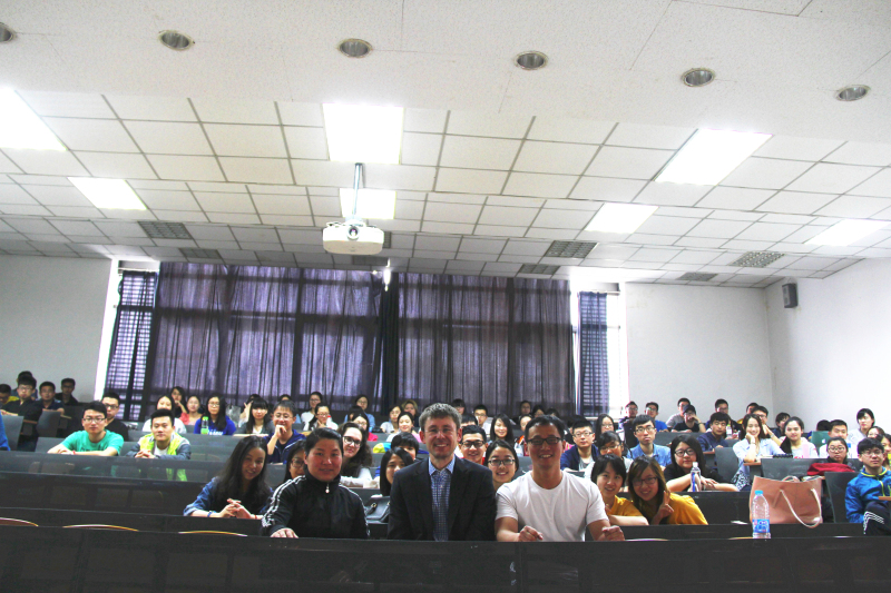 在交流访问期间,赫普先生为我校研究生做了题为“大型足球赛事”的讲座,介绍了大型足球赛事在策划、申办和运行阶段的重要特点,得到在场师生一致好评。