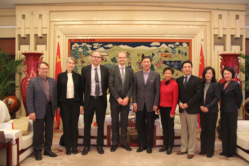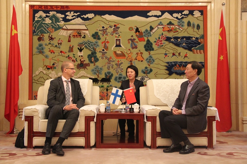 10月27日,芬兰于委斯屈莱大学和沃卡蒂冬季项目中心体育与健康学院院办主任海基·海尔瓦教授(Prof. Heikki Herva)、维萨·莉娜莫博士(Dr. Vesa Linnamo)佩维·萨里教授(Prof. Päivi Saari)、安蒂·列巴瓦利教授(Prof. Antti Leppävuori)及程蜀琳教授一行五人访问我校,我校杨桦书记接待了代表团。双方互相介绍了两校的情况,并就两校合作交换了意见。陪同参加会见的还有我校外事处金晓平处长、外事处董梅副处长及外事处杨旖旎老师。