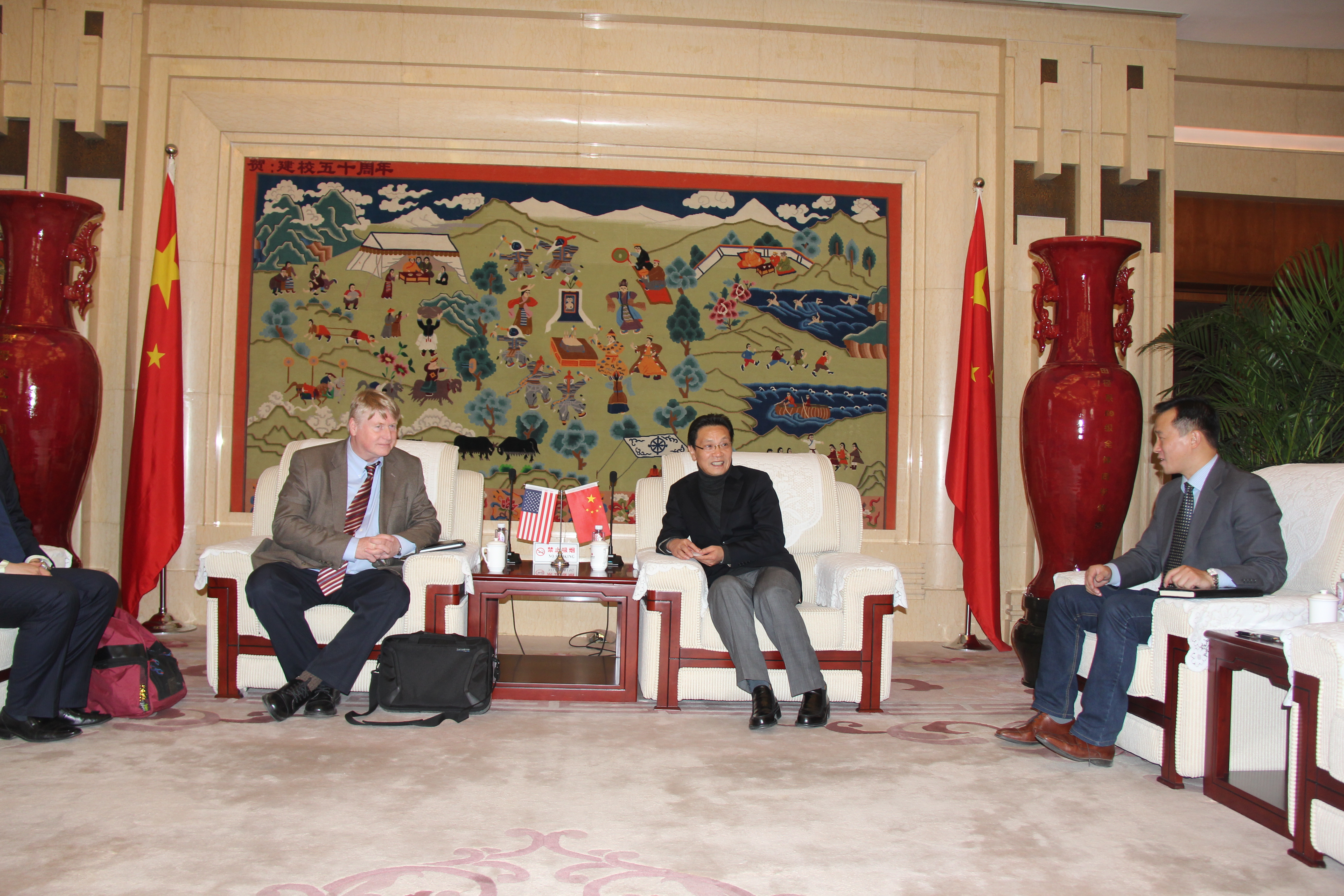 2015年1月4日,美国东斯特劳斯堡大学副校长Michael southwell先生、校友张鹏老师来我校访问并进行招生。我校外事处金晓平处长亲切会见了来访代表团,并就我校情况进行了简要介绍。双方对师生交换、留学生交流等方面的合作进行了交流。参加此会议还有外事处副处长花勇民、教务处副处长章潮晖、运动人体科学学院副院长毛志雄、康复系副主任蔡旭东和外事处周耀虎老师。会后,来访代表团在我校教学楼215教室进行了招生宣讲会。