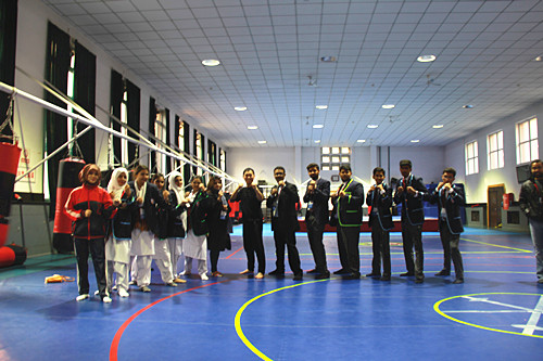 2017年12月14日,巴基斯坦青年代表团一行30人到访我校,我校国际交流与合作处孙煜老师、周耀虎老师接见了代表团。周耀虎老师在我校武术馆为巴基斯坦青年代表团上了一节别开生面的武术课,受到代表团广泛好评。