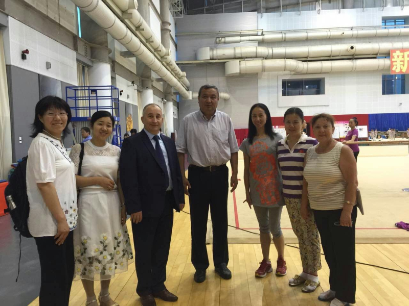 2015年6月29日,白俄罗斯国立体育大学校长R.Kasiachenk先生一行2人到我校访问。我校党委副书记、校长池建代表学校与其进行亲切会谈。双方就两校之间的各项合作进行交流,特别是对艺术体操项目、学生交换项目方面的合作进行了洽谈,参加此次会见的还有国家队训练基地办公室杨斌胜主任、外事处董梅副处长、花勇民副处长、吴俊老师和部分曾留学白俄罗斯的教师。