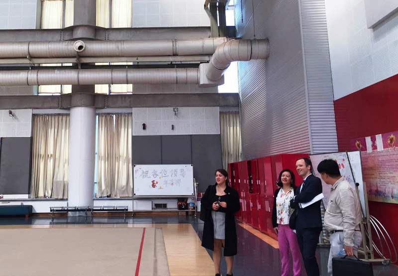 月份爱尔兰高访团的在校日程安排等细节等进行协商。会后在董梅副处长的陪同下,来访代表团参观了我校冠军之路、室外足球场和国家队训练基地等场地。
