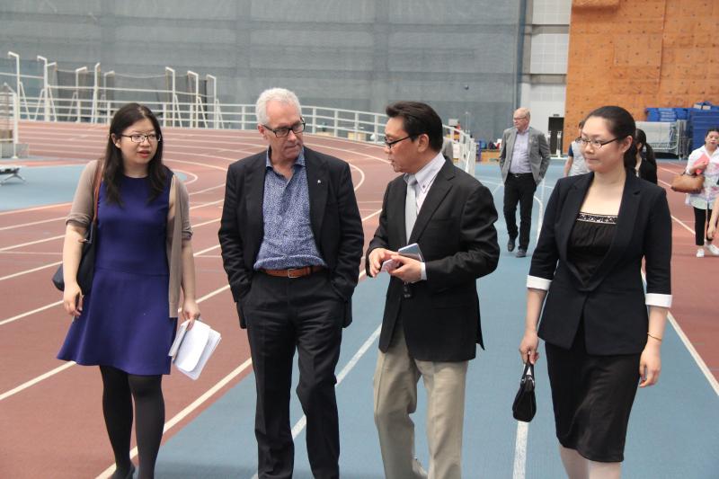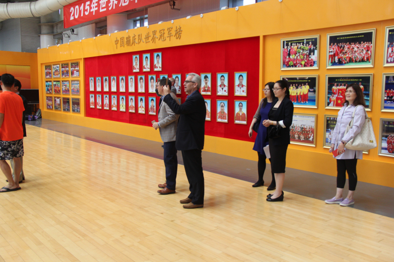 随后,来访代表团在金晓平处长和洪彬老师的陪同下参观了我校的国家队训练基地等场馆设施。