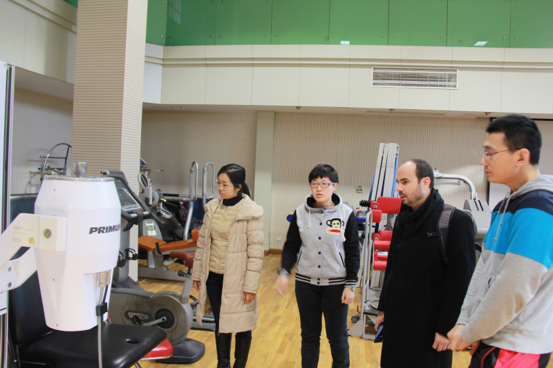 2015年12月1日,西班牙武康大学高水平运动研究中心主任Pedro E. Alcaraz教授来访我校。我校外事处花勇民副处长亲切会见Pedro E. Alcaraz教授并与其进行会谈。会谈中双方就两校高水平运动教育、训练、科研等方面的合作交流做出探讨。参与此次会谈的还有外事处吴俊老师。会后Pedro E. Alcaraz教授在吴俊老师的陪同下参观了我校运动康复中心、科研中心和国家队训练基地。