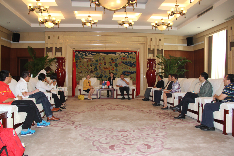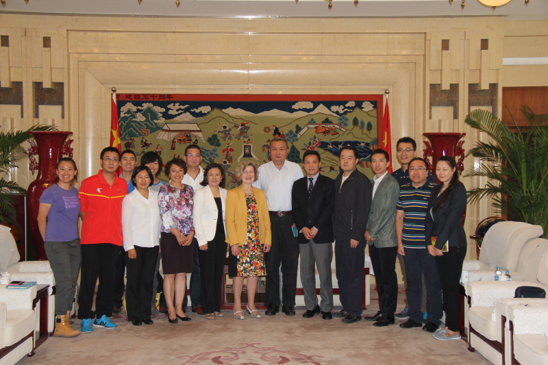 2015年9月14日,世界物理治疗联合会副主席Margot Skinner女士来我校进行友好访问。我校校长、党委副书记池建同志亲切会见Margot Skinner女士,并与其就双方物理治疗交流与合作方面进行了会谈。会谈中,池建校长向Margot Skinner女士介绍了我校康复理疗方面基本情况,并表示希望通过此次会见促进增加双方之间关于物理治疗方面的交流合作。参加会谈的还有外事处金晓平处长、董梅副处长、洪彬老师、周耀虎老师与我校康复系相关领导和教师。会后,Margot Skinner女士与我校康复系王安利、矫玮等老师就相关合作进行了具体商讨。