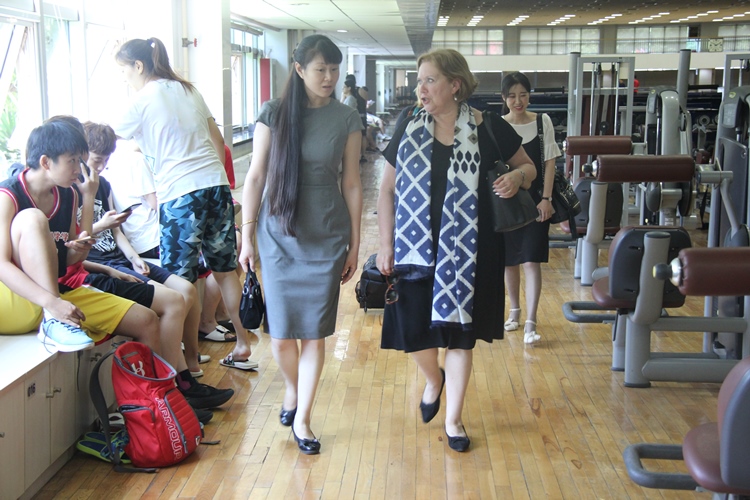 会后,来访代表团在洪彬老师陪同下参观了网球综合训练馆等场馆设施。