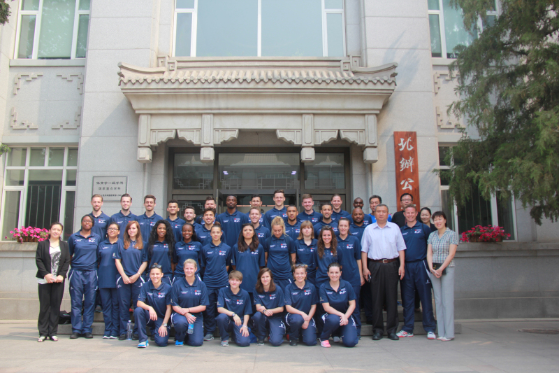 会后东伦敦大学的师生在外事处洪彬老师和国际教育学院田青副院长的陪同下,一同参观了科研中心,网球综合馆,国家队训练基地等场馆设施。