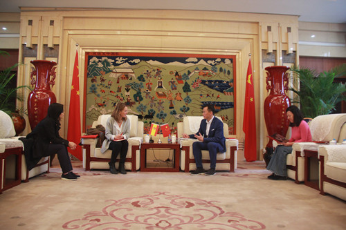 10月25日上午,西班牙马德里欧洲大学品牌拓展经理玛利亚•卡森诺娃(Maria Casanova)女士和亚洲区经理熊新女士访问我校。国际交流与合作处副处长花勇民和杨旖旎老师参加了会见。