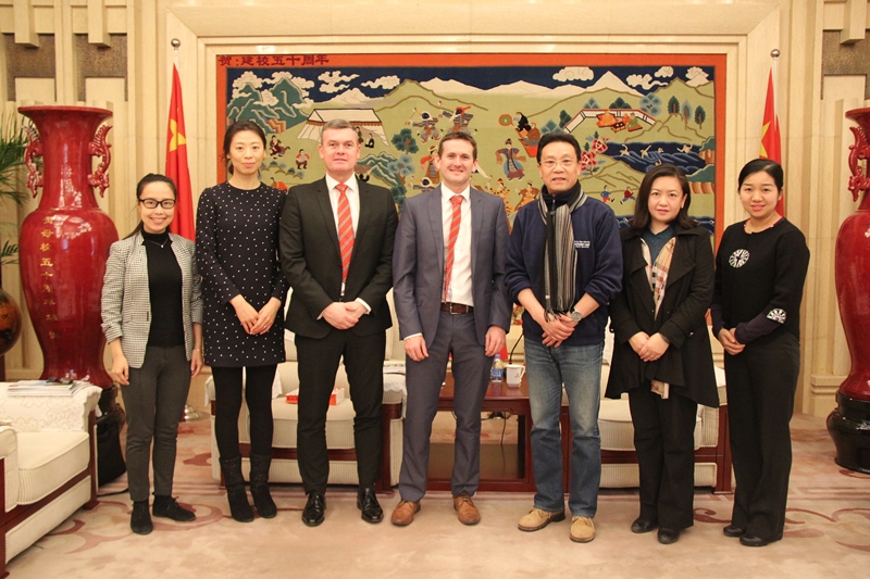 2016年12月1日,英国南威尔士大学足球主教练与发展主任罗勃·格里菲斯先生(Rob Griffiths)率代表团一行4人来访我校,我校外事处处长金晓平会见了代表团。双方就足球交流、足球教练员培训和足球青少年训练的合作交换了意见。