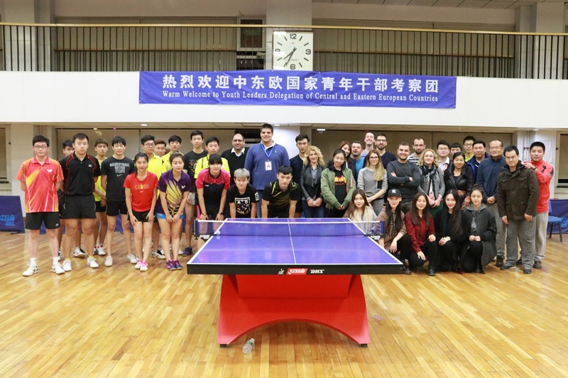 2016年11月27日,应中共中央对外联络部和共青团中央邀请,来自塞尔维亚、马耳他、黑山、阿尔巴尼亚、罗马尼亚五国的青年干部、政府青年事务机构负责人和全国性青年组织领导人一行20人来访我校。我校团委书记周启迪接待了代表团,双方就体育文化交流进行了简短商谈,随后我校学生与代表团成员开展了乒乓球交流活动。陪同参加此次交流的还有教育学院副院长武文强、乒乓球教研室主任刘丰德教授及外事处吴俊老师。