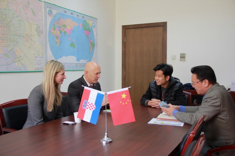 2016年11月28日,克罗地亚萨格勒布大学教授塞尔蒂奇(Hrvoje Sertic)先生一行2人应邀来我校进行学术讲座,我校外事处金晓平处长会见代表团。