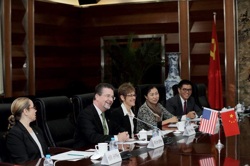 2016年10月25日上午,美国春田学院副校长斯图尔特·琼斯博士(Dr. Stuart Jones)、健康、体育与休闲学院院长特雷西·马修斯博士(Dr. Tracey Matthews)及国际中心主任黛博拉·阿姆女士(Ms. Deborah Alm)一行3人来我校访问并参加两校友好校际关系35周年纪念仪式。我校党委书记杨桦、校长池建接待了代表团,参加会见的还有我校外事处金晓平处长、董梅副处长、洪彬老师、体育教育学院院长王华倬教授及我校曾在春田学院进修过的老师。