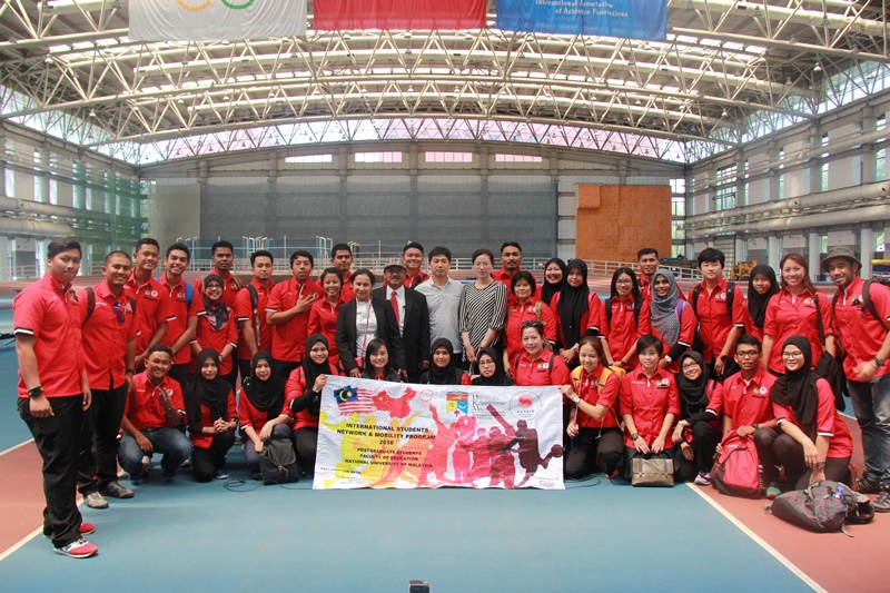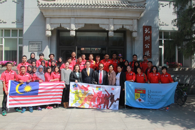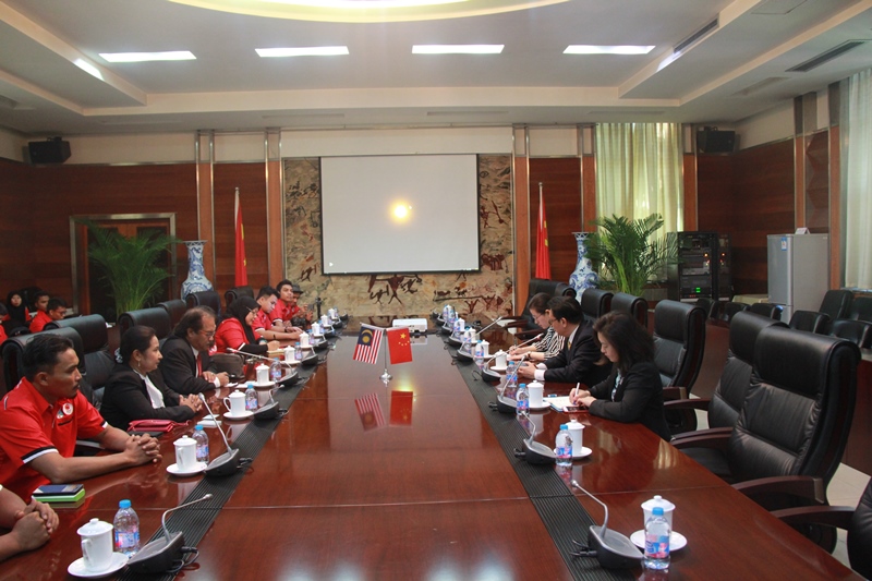 2016年5月13日,马来西亚国民大学体育教育系副教授莫哈·塔伊布·哈伦(Mohd Taib Harun)先生率师生代表团一行37人来我校进行交流访问。2026世界杯官网外事处处长金晓平会见代表团一行。双方介绍了各自基本情况,并就学生交流和互派专家讲学事宜进行商谈。参加会谈的还有外事处副处长董梅、孙晓老师。会后,代表团在外事处工作人员的陪同下参观了我校网球综合馆、科研中心和国家训练基地综合馆。