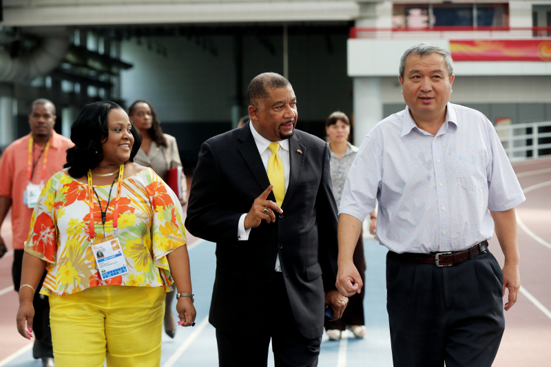 2015年8月25日,在牙买加驻华大使拉尔夫·塞穆尔·托马斯(Ralph S. Thomas)先生的带领下,牙买加体育部部长Natalie Neita Headley女士率代表团一行6人访问我校。我校校长、党委副书记池建同志会见代表团一行并简要介绍了我校情况;双方就两国及两国相关体育院校和机构在教育、训练、科研等方面的合作可能性进行了深入探讨。会谈结束后,池建校长带领来访代表团参观我校国家队训练基地及科研中心。参加本次访问接待的还有外事处平处长金晓平、副处长董梅、我校2014年受国家留学基金委资助赴牙买加培训的部分教师代表、外事处吴俊老师。