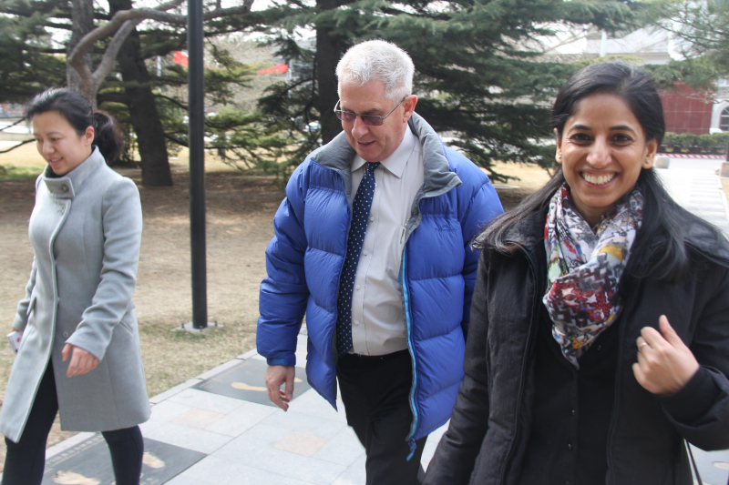 人来我校进行交流访问。我校外事处金晓平处长亲切会见代表团,并向代表团介绍了学校概况。双方就两校之间关于学生交流与合作等项目进行会谈。参与此次会谈的还有外事处花勇民副处长、外事处董梅副处长、教务处章潮辉副处长、外事处吴俊老师以及杨旖旎老师。