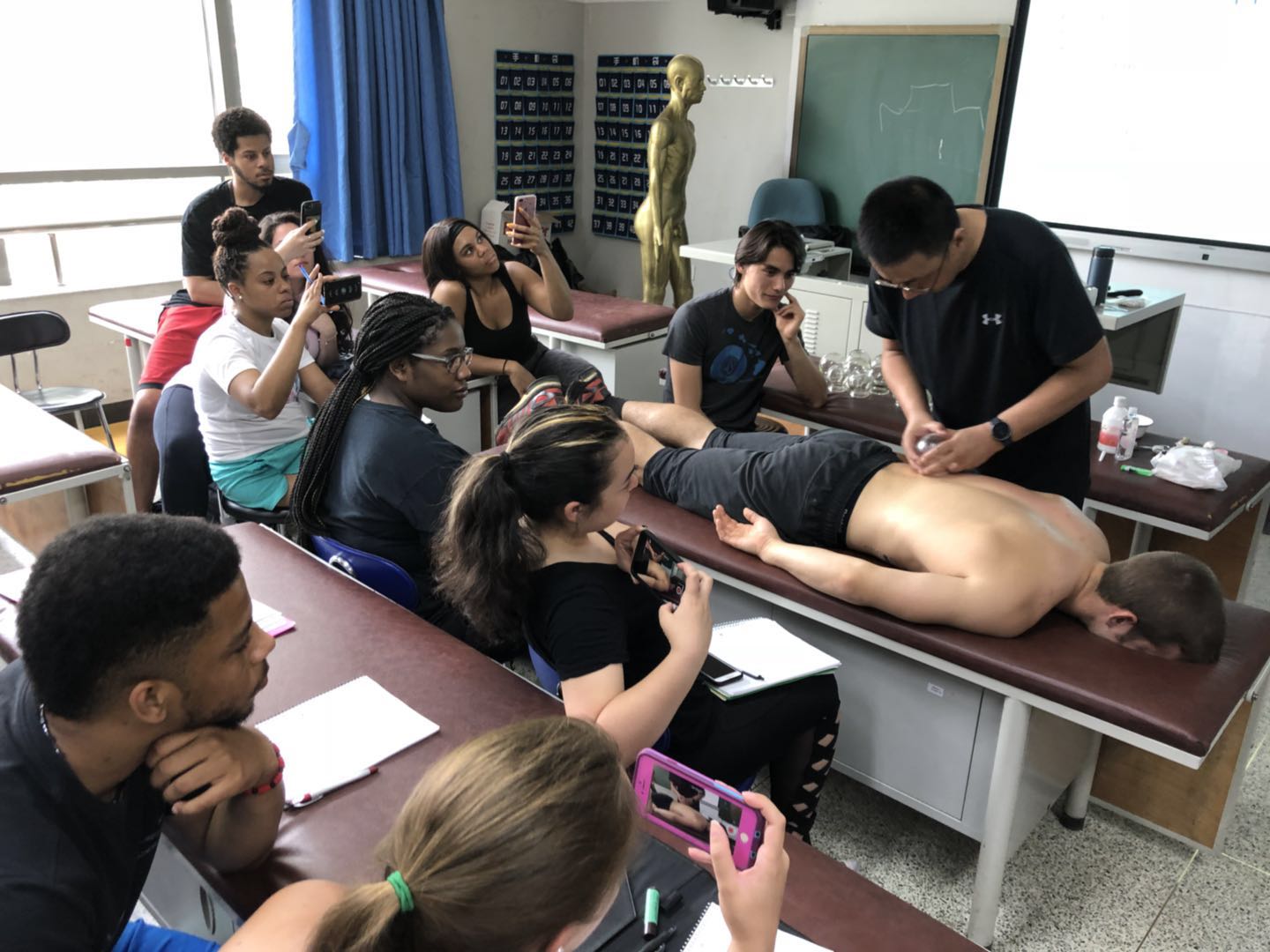 国际交流与合作处接待并安排了全部课程,运动人体科学学院承办了所有的学生活动。佐治亚州立大学学生在我校体验了武术课、中医按摩课、针灸课、围棋课、羽毛球、中国舞蹈课、以及舞龙、舞狮、柔力球等课程。学习期间,该校师生参观了国家队训练馆和科研中心。