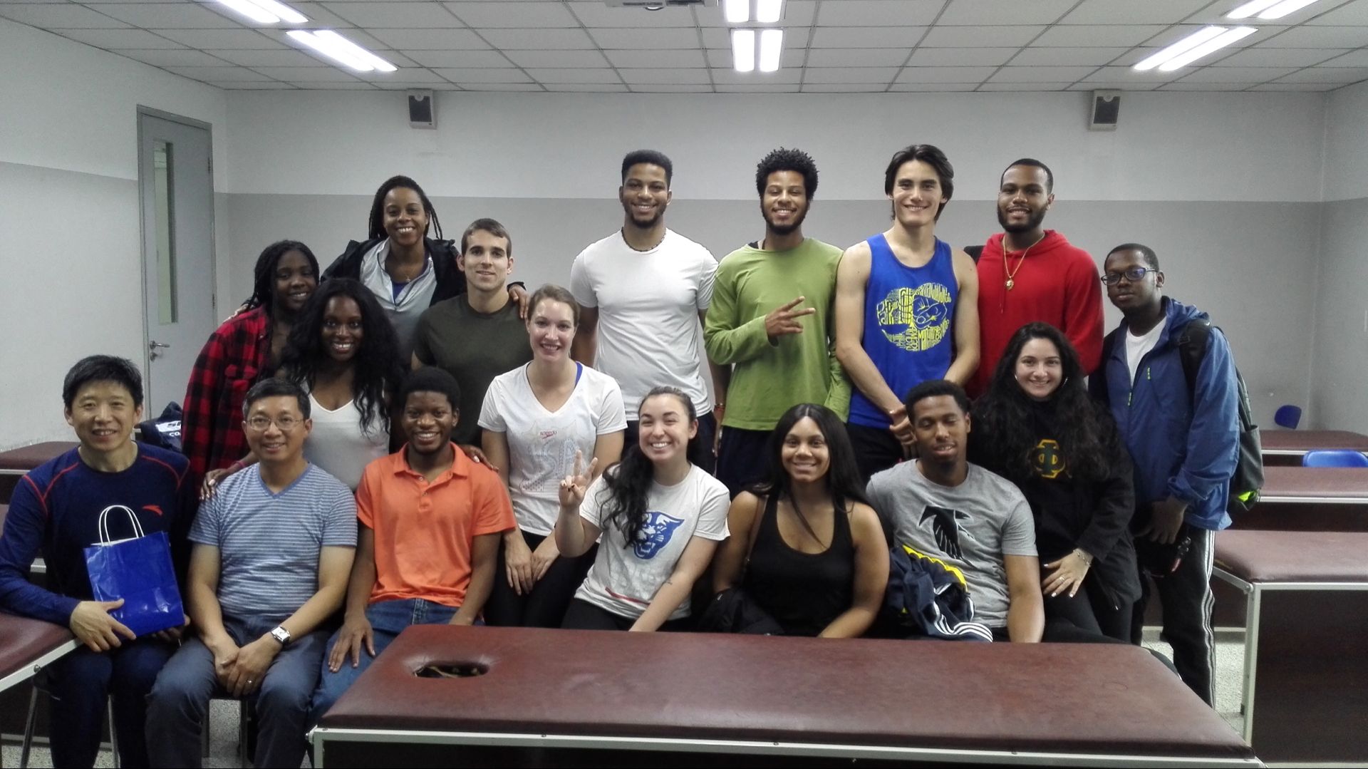 美国佐治亚州立大学运动人体科学与健康系老师和学生一行16人于2018年5月9日至23日来我校进行短期项目交流学习,这是该校第5次来访,且该校学生在我校学习的全部课程所获得的学分将被佐治亚州立大学认可。该项目由国际交流与合作处副处长花勇民、张笑老师负责。