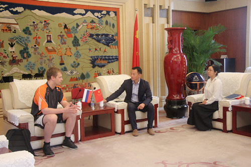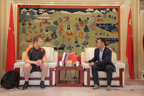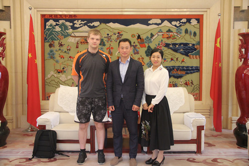 2017年9月15日,俄罗斯国立体育、青年与旅游大学(俄体大)外事处处长Evgeny Morozov来访我校, 国际交流与合作处花勇民副处长与其就两校师生交流、科研合作等方面的合作进行了会谈;两校学生交流取得巨大进展,本学期随我校“一带一路体育奖学金”就读的留学生中,有6名来自该校。Evgeny Morozov还代表俄体大邀请我校派代表团参加该校百年校庆活动,此校庆将于2018年5月19日举行。 国际交流与合作处吴俊老师也参加了会见。